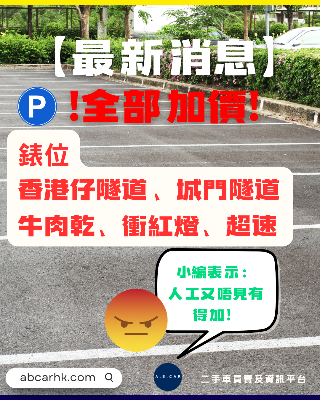 【最新消息|加价】咪表位|香港仔隧道、城门隧道|牛肉干|冲红灯、超速